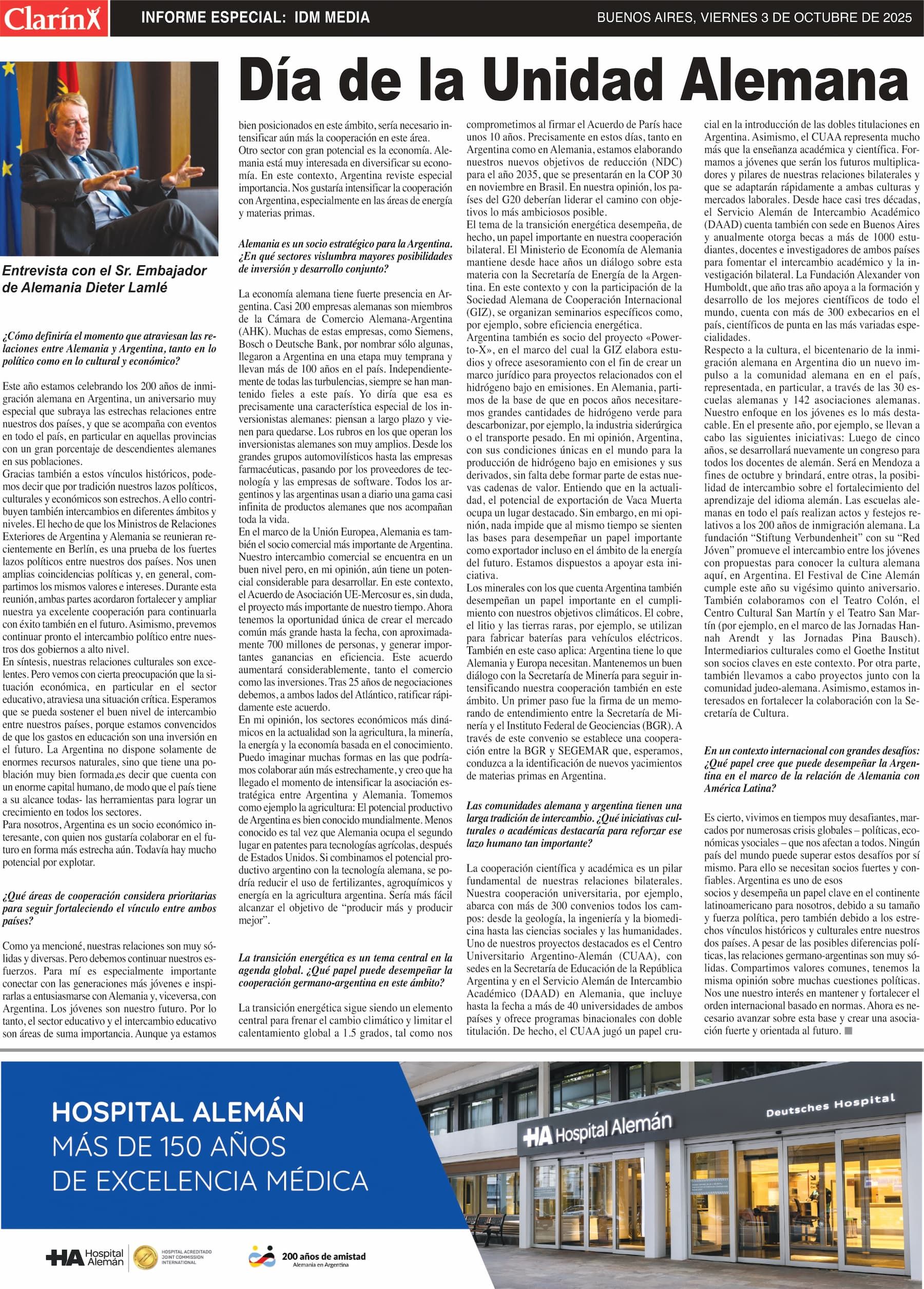 Día de la Unidad Alemana 2025 - Entrevista del Embajador Dieter Lamlé con el diario Clarín