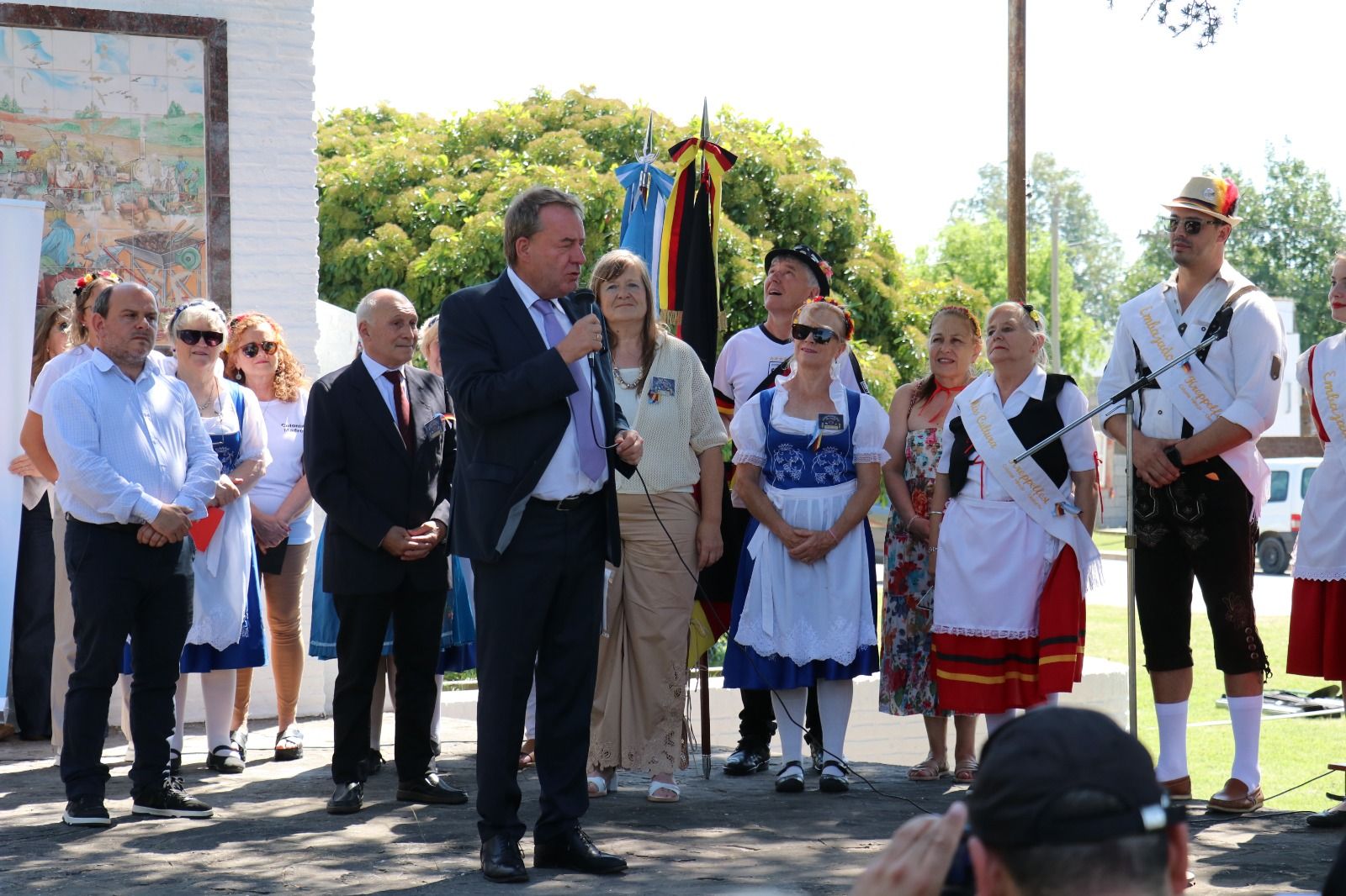 La jornada comenzó el jueves 4 de diciembre en Colonia Hinojo, donde fue recibido en el Monumento a los Fundadores por autoridades de la Unión de Colonias Alemanas de Olavarría, representantes municipales, religiosos y vecinos descendientes de los pioneros. Con cordialidad, el Embajador compartió charlas, respondió preguntas y se prestó a fotografías antes del acto protocolar. Luego se entonaron los himnos de Argentina y Alemania, y se escucharon palabras de bienvenida que destacaron la emoción de estrechar nuevamente el vínculo con la tierra de los antepasados.
