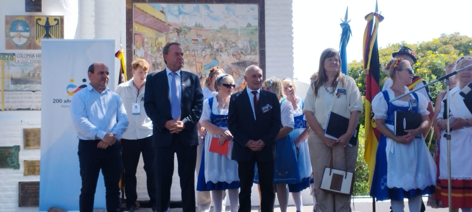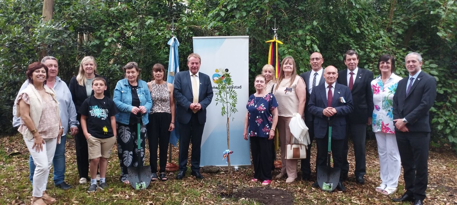 En su discurso, Lamlé subrayó que la comunidad alemana no se divide por regiones de origen: “todos somos alemanes”, afirmó. Como símbolo de amistad entre ambos países, se plantó un árbol en la colonia, gesto que se repetiría en cada localidad visitada. El recorrido incluyó la iglesia, el cementerio y el Museo “Ariel Chiericó”, donde se interesó especialmente por las antiguas sepulturas y la memoria viva de la comunidad.