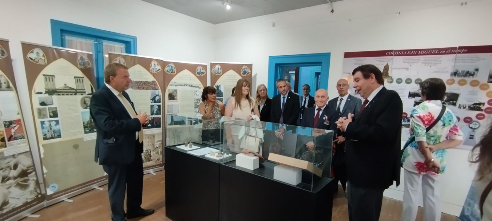 El viernes 5, la visita continuó en Colonia San Miguel, con la inauguración de una sala en el Museo “Miguel Stoessel Müller” y la apertura de la muestra La Vida Religiosa de los Alemanes del Volga. Más tarde, en Colonia Nievas, el Embajador recorrió la Capilla San Miguel Arcángel —la primera iglesia fundada por Alemanes del Volga en el país— y plantó el árbol número 35 en su gira. Allí recibió el libro Colonia Nievas Alemanes del Volga, Relatos de su Historia, en su edición alemana.