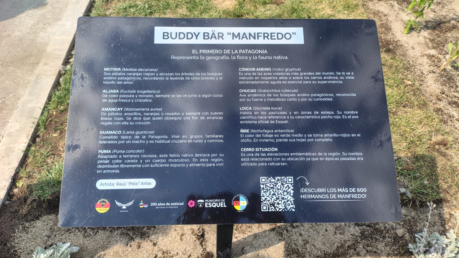Manfredo, el oso de la paz, ya forma parte del patrimonio cultural de Esquel