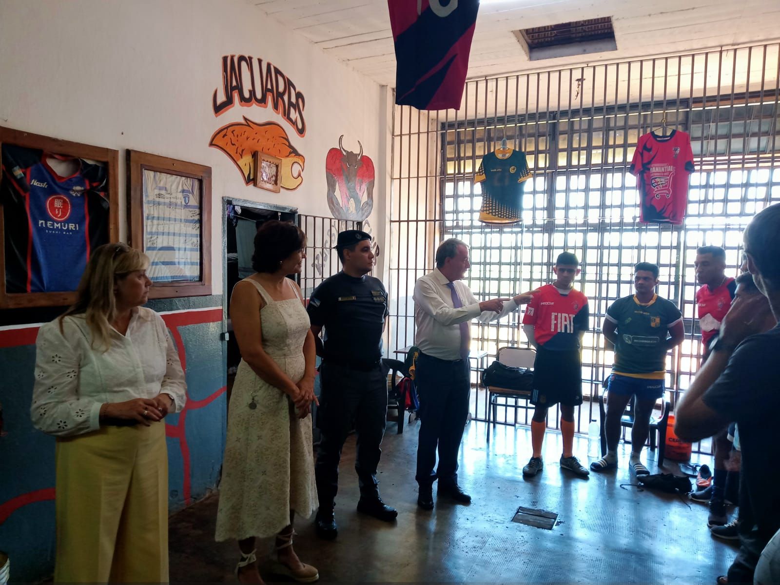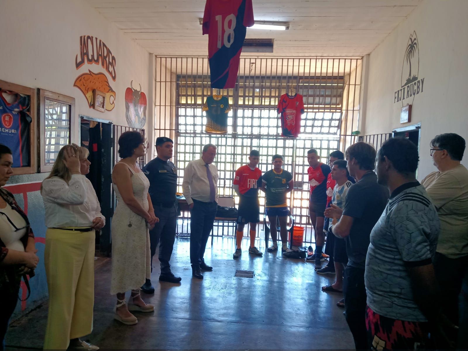 La recorrida contó con la presencia de la diputada Carolina Butvilofsky. El embajador y su equipo iniciaron la visita en la cancha de rugby, donde observaron una demostración de tocata por parte de los internos que integran el equipo Los Toros. “Con el calor que hacía, no podían creer cómo se movía la pelota de un lado al otro”, relató Flores.